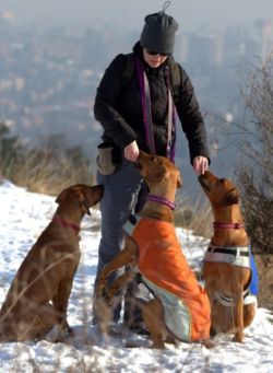 Na Dívčích hradech jsme se sešly minulou neděli (bez FanTýmu a tudíž i bez fotek) i dneska (s FanTýmem a tudíž i s fotkama). Původně jsme měly domluvený cvičák a až po něm procházku, jenže zima je zima, a ta je prostě na cvičáku větší než jinde. A tak nám lekci zrušili. Což nevadí, dvojka školou povinná – Muňáno a Týna – stejně preferuje spíš korespondenční formu studia.